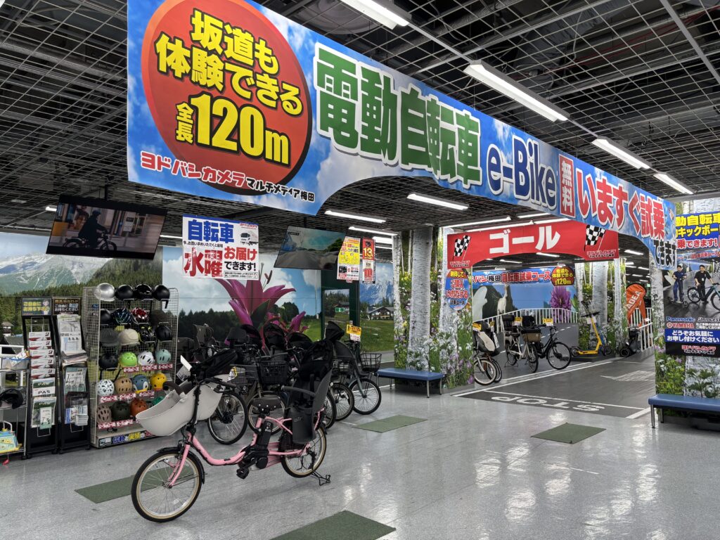 電動自転車の試乗は「ヨドバシカメラ梅田店」へ行きました。