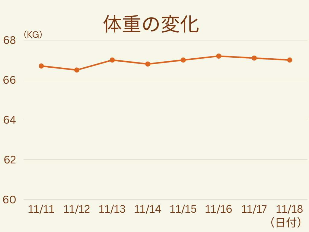 ・体重:67.0kg(開始時より+1kg)