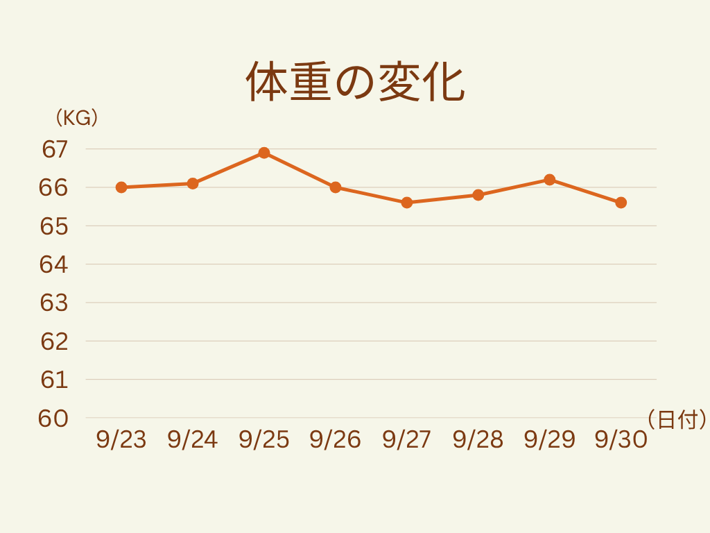 ずーっと66kg付近をウロウロしてるよなー。いかんな。