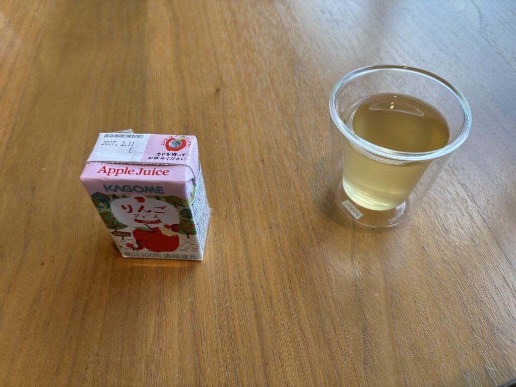 チェックイン手続きで待っている間、ハーブティーをいただきました。子供には、麦茶かりんごジュースを選ばせていただけました。