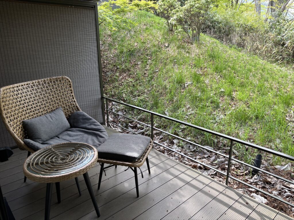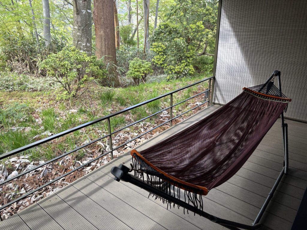 翌朝は雨が降っていたのですが、雨が屋根にポタポタと当たる音、鳥がピーっと鳴いている音しか聞こえず、それはそれは癒されました。