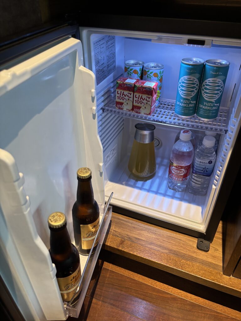 冷蔵庫の中には、さらにペットボトルのお水、炭酸水、ビール、ハーブティー、ジュースが入っていました。