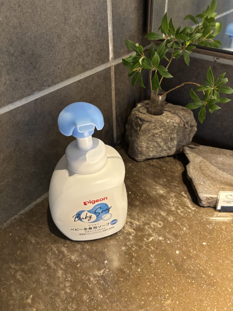 洗面台には、子供用のボディソープが置かれていました。アメニティはあっても、ボディソープを用意してくれているホテルはあまりないので、配慮が素晴らしいなと感じました。