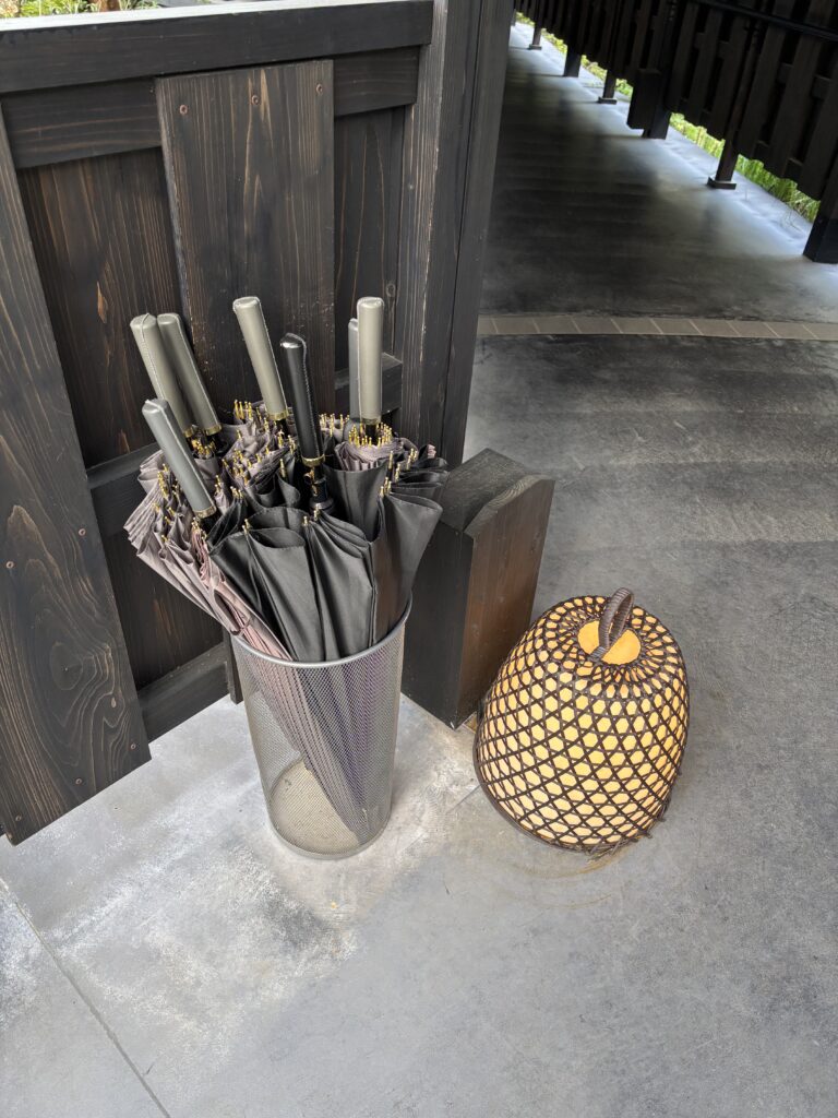 雨の日でも移動できるように廊下に傘を置いてくれています。細かいところまで配慮されています。