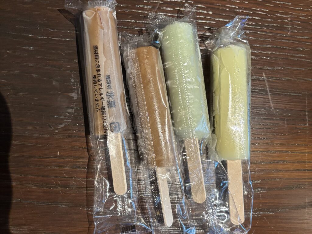 左の茶色いアイス、チョコレートと思っていただいたのですが、なんとコーラ味でびっくりしました。笑
