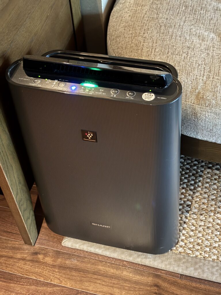 リビングルームには空気清浄機も置かれていました。