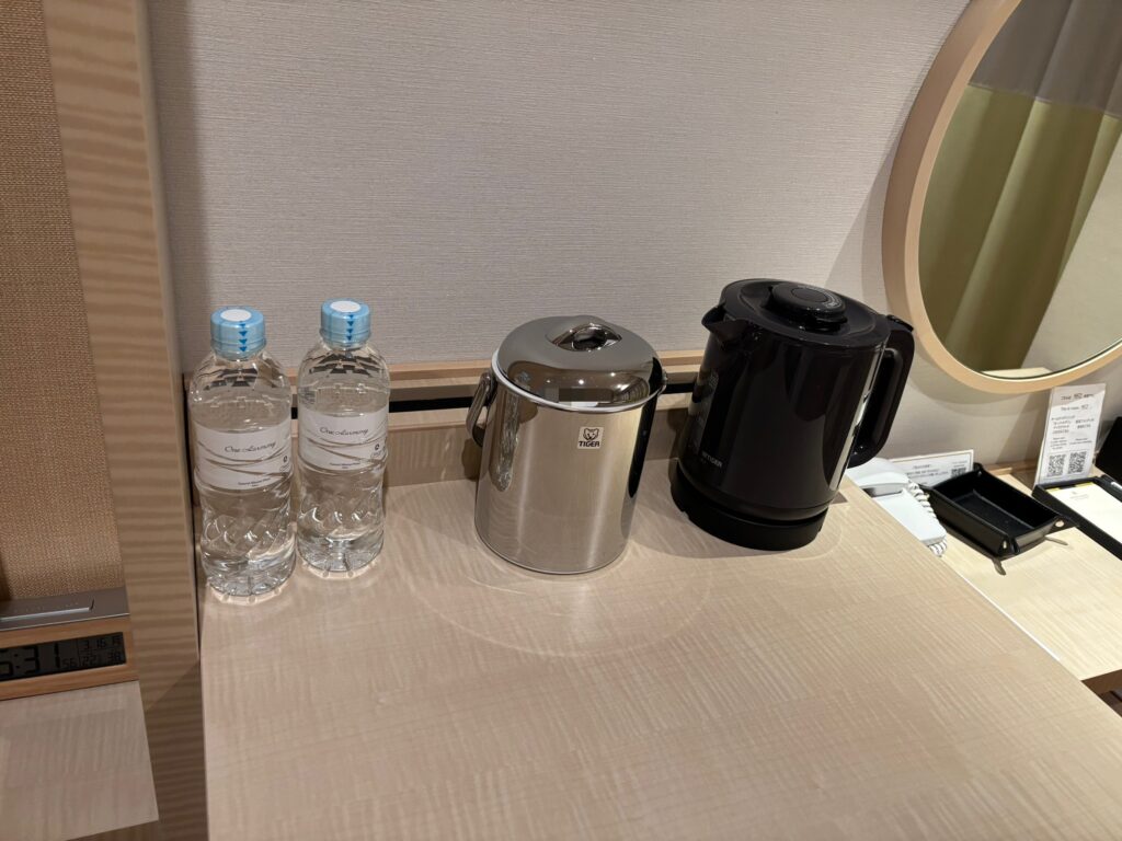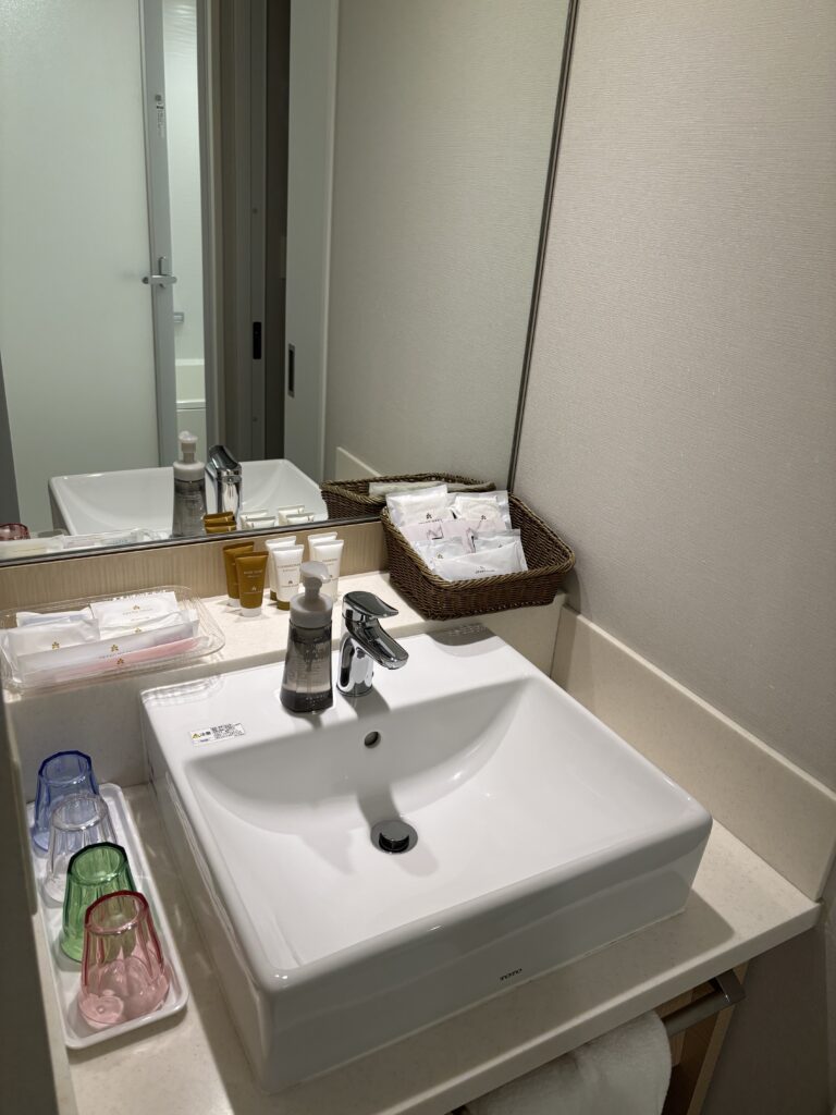 アメニティは洗面台に揃っており、綺麗に並べられていました。
